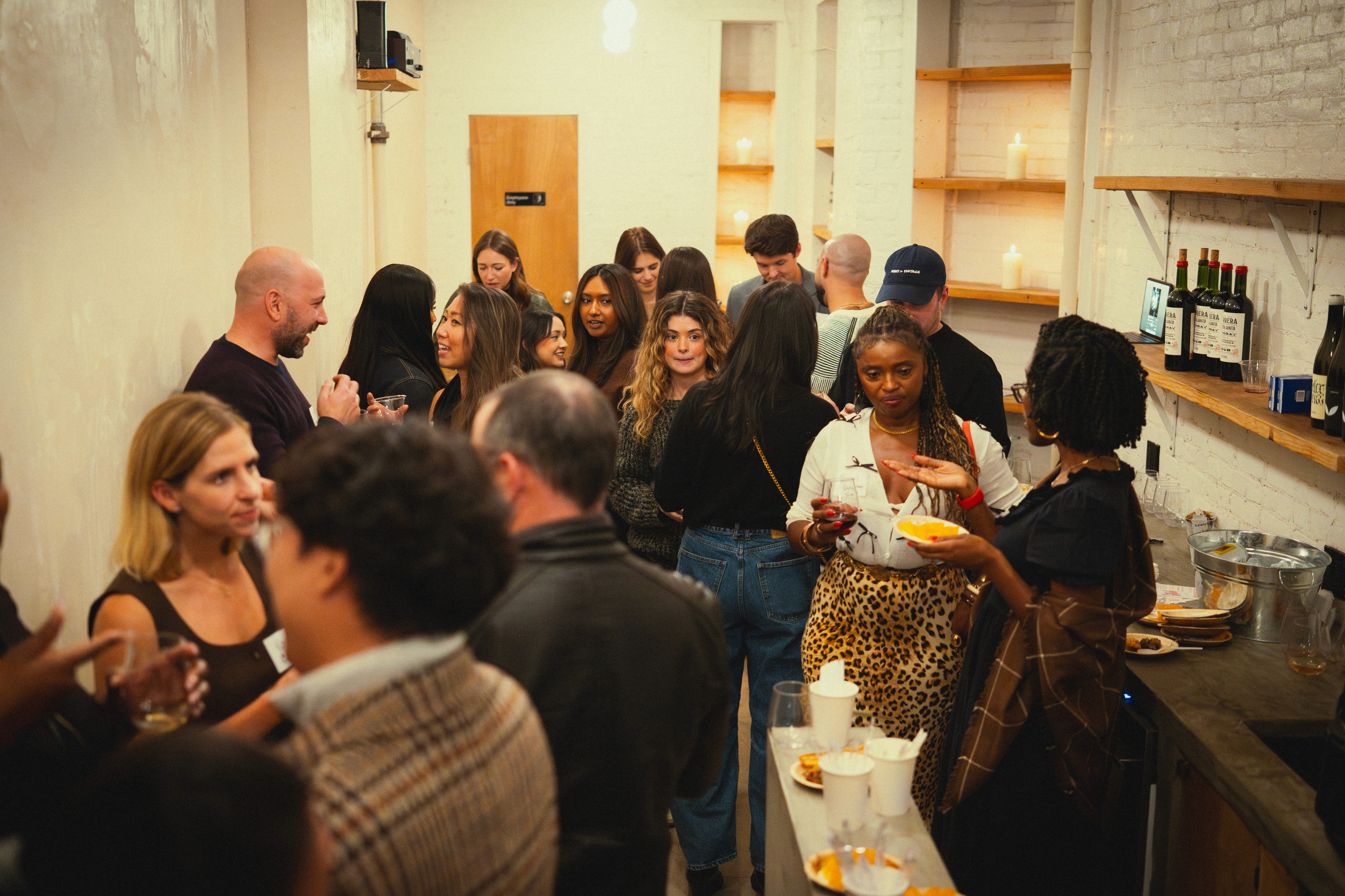 Good wine, great food, and a collaborative playlist that sets the vibe. It's a proper night out — not a panel, not a pitch fest. Just good people in a great room.